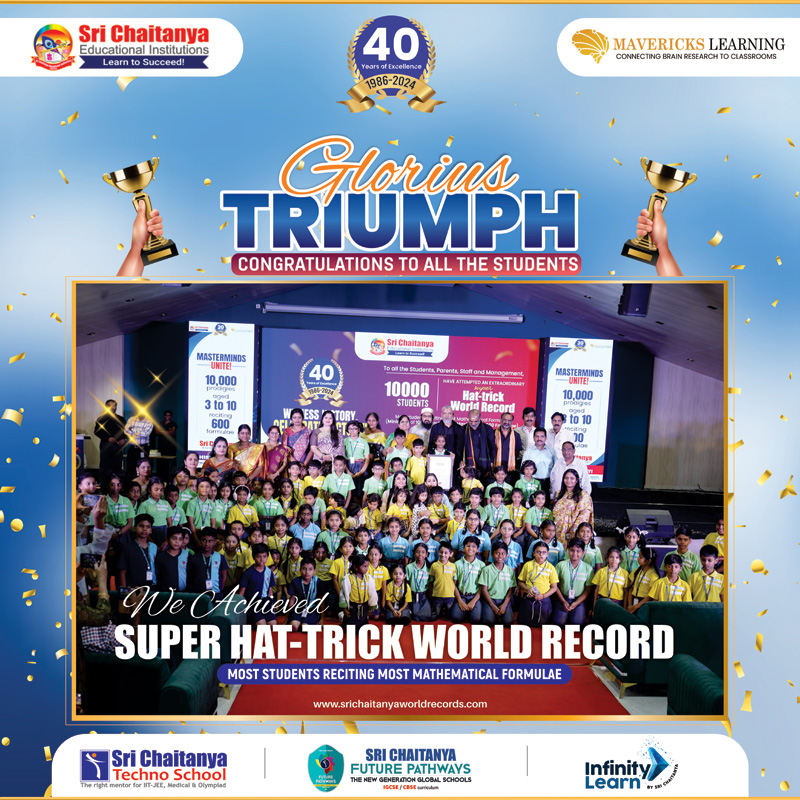 Sri Chaitanya Schools boasts a remarkable history of setting world records, a testament to our innovative teaching methods, a unique approach –Mavericks Learning Approach, and student dedication.