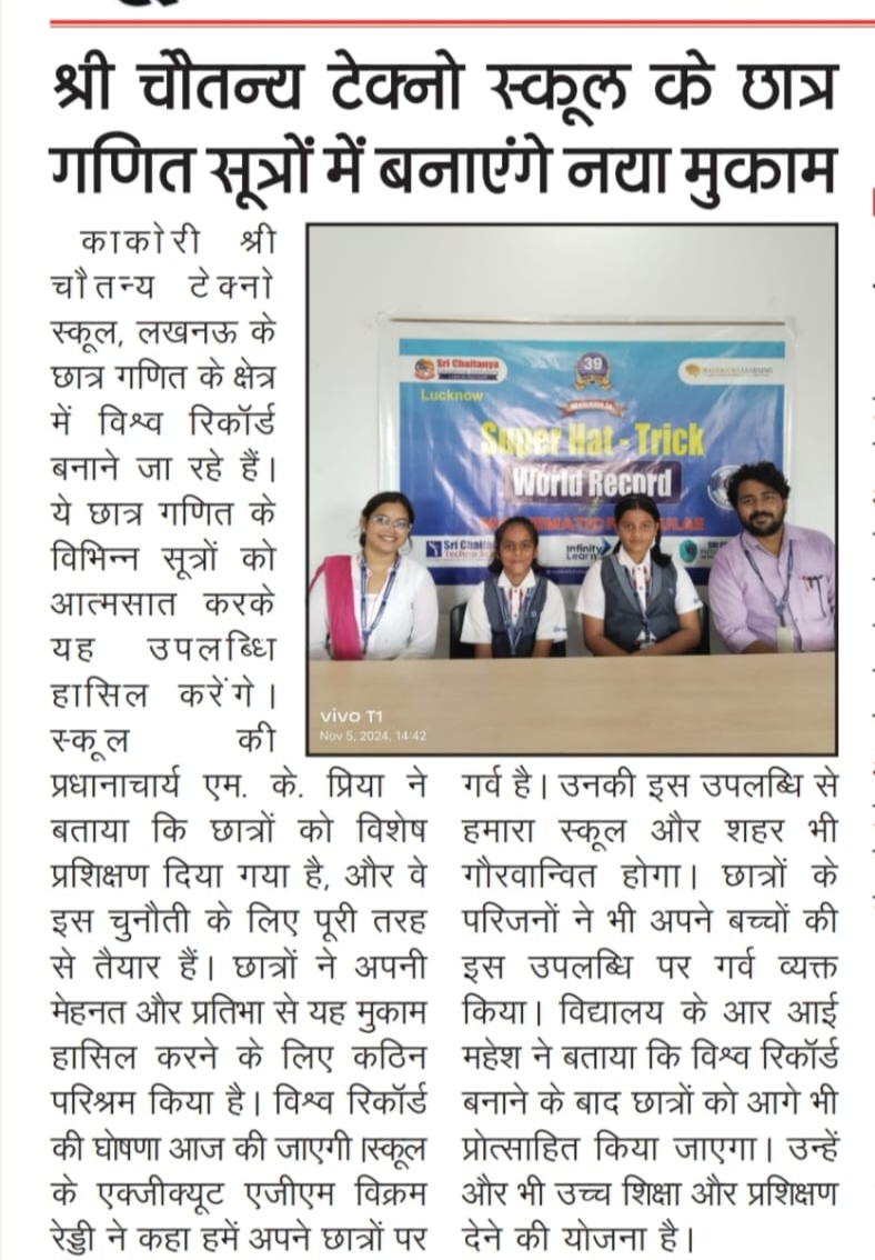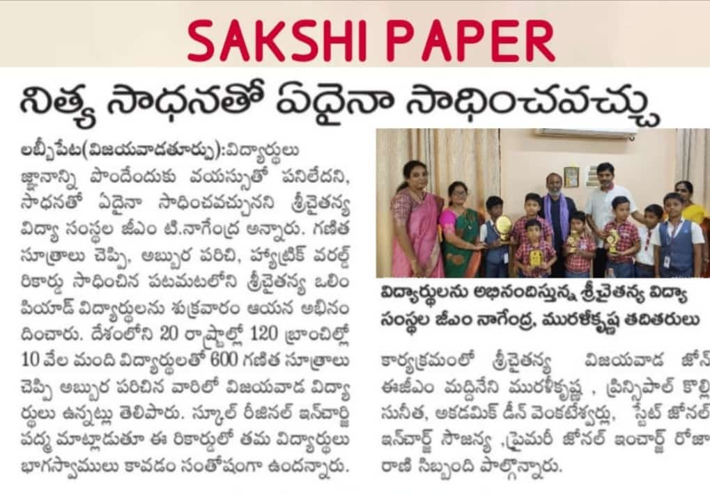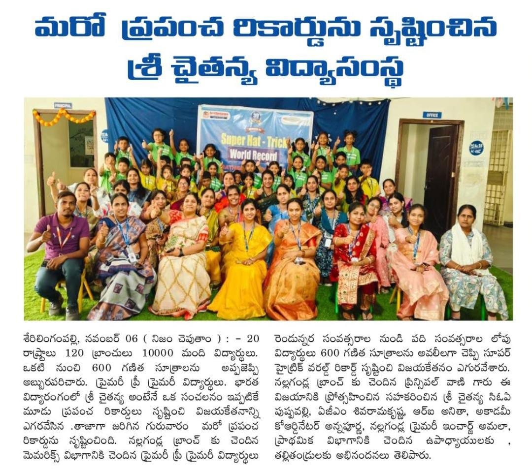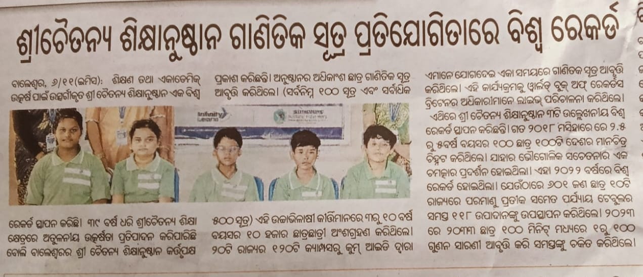 ଶ୍ରୀ ଚୈତନ୍ୟ ଟେକ୍ନୋ ସ୍କୁଲ୍ ଏବେ ଚର୍ଚ୍ଚାରେ - ୫ ଜଣ ବିଦ୍ୟାର୍ଥୀଙ୍କ ବିଶ୍ୱରେକର୍ଡ ହାସଲ