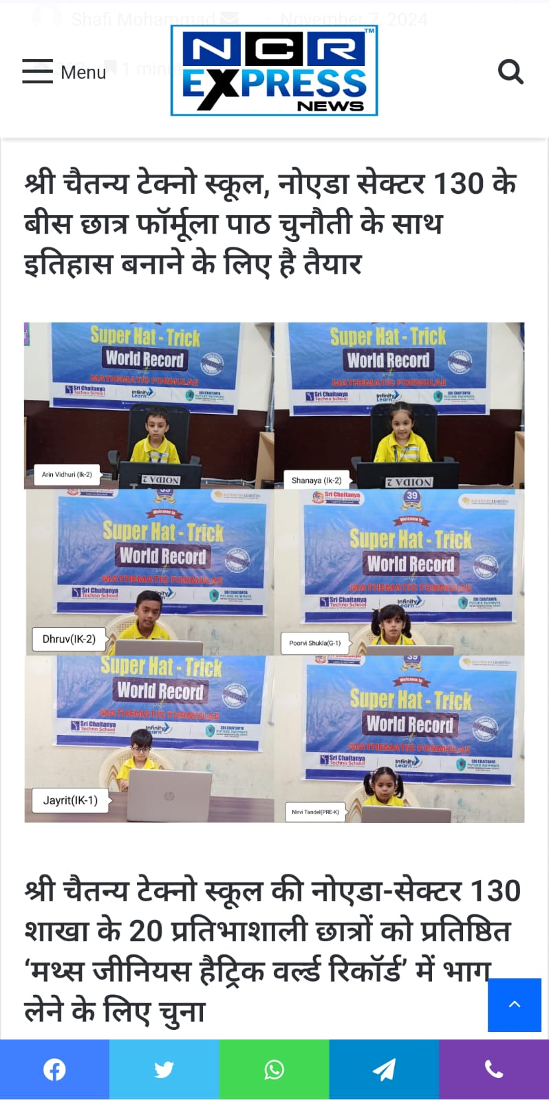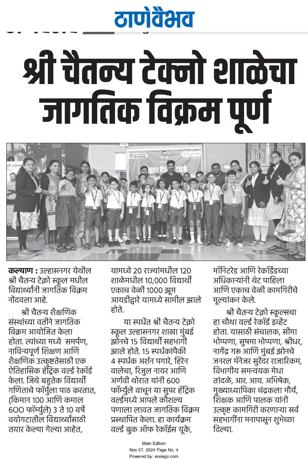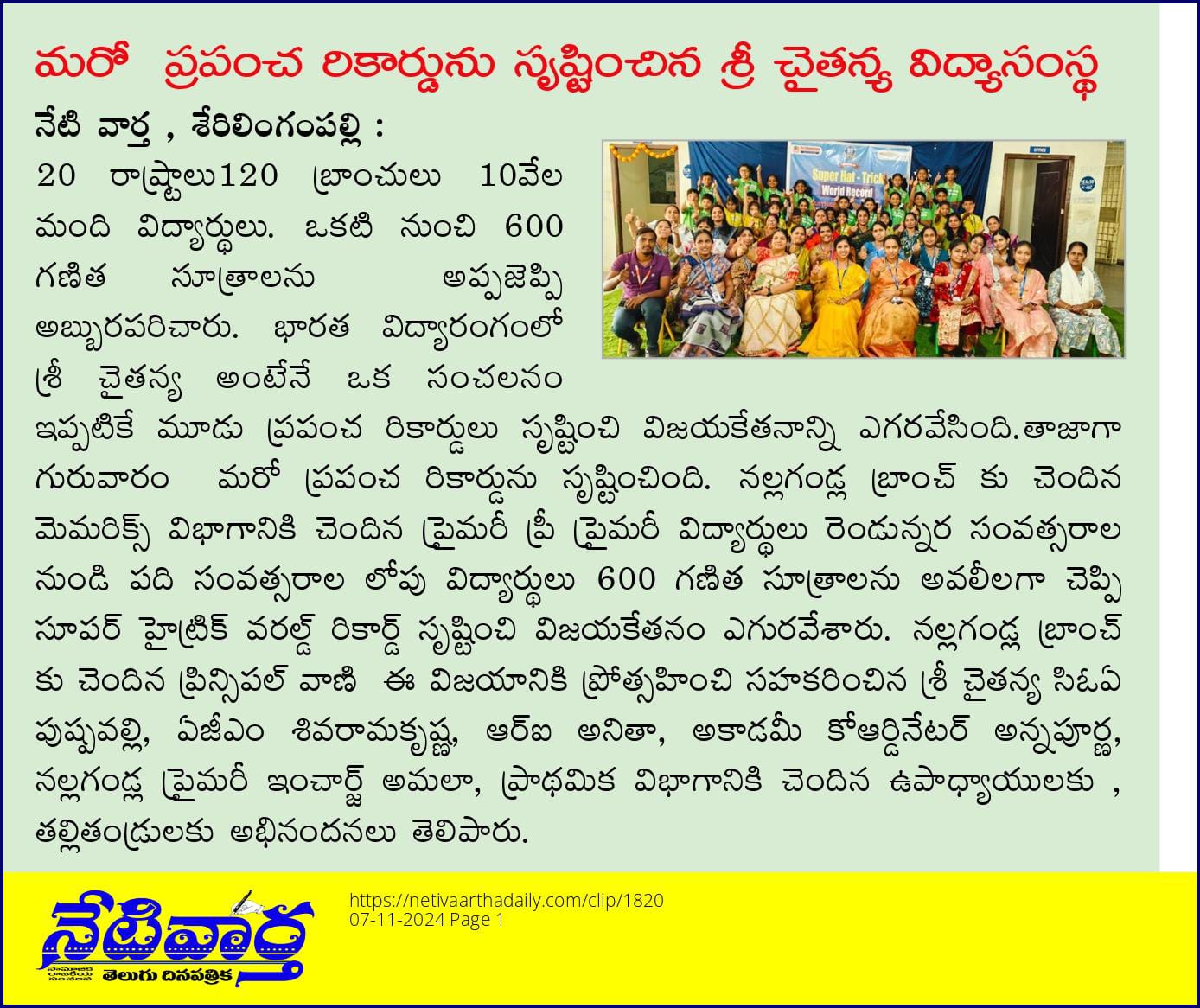 ଶ୍ରୀ ଚୈତନ୍ୟ ଟେକ୍ନୋ ସ୍କୁଲ୍ ଏବେ ଚର୍ଚ୍ଚାରେ - ୫ ଜଣ ବିଦ୍ୟାର୍ଥୀଙ୍କ ବିଶ୍ୱରେକର୍ଡ ହାସଲ